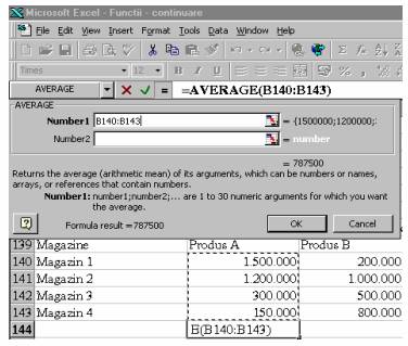 AVERAGE Medie Fig. 1.58 Functia PRODUCT