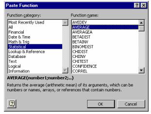 În cel de-al doilea caz, se activeaza selectorul functiilor predefinite aflat pe bara de editare sau se activeaza comanda Insert Function (figura 1.52). Apoi, se alege functia respectiva, din caseta de dialog Paste Function, se valideaza si se completeaza sintaxa generata automat.