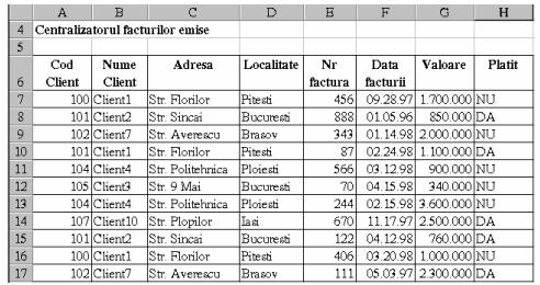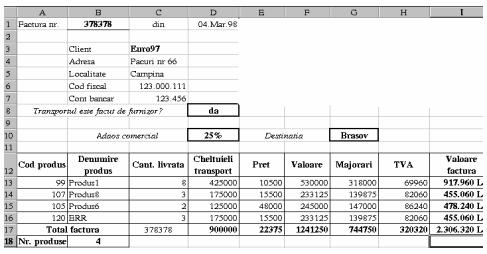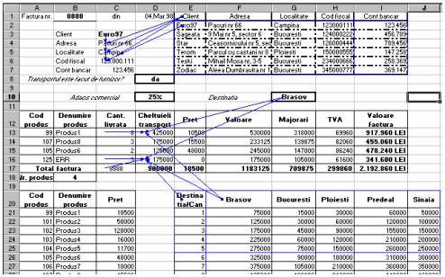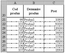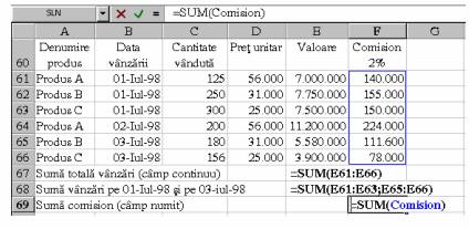 În exemplul prezentat în figura 1.59 se calculeaza suma (referinta-tip 9) valorilor produselor vândute pe 01-Iul-98 (câmpul de regrupat este E31:E33).