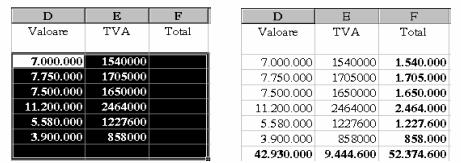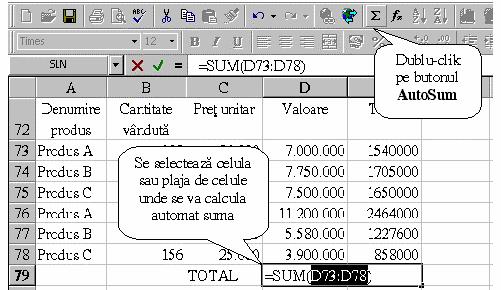 calculelor) si se activeaza butonul AutoSum prin dublu-click;