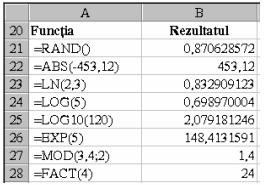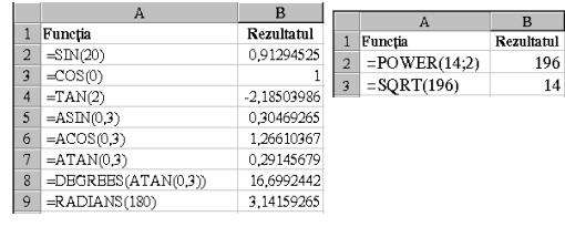 1.4.1.1 FUNCŢIILE MATEMATICE sI TRIGONOMETRICE