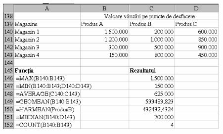 functii statistice (Statistical): permit efectuarea unor calcule statistice utilizând serii de valori;