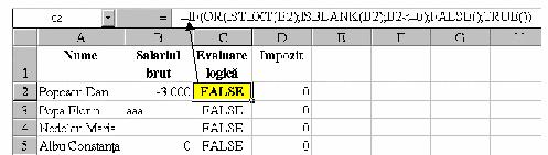 - o conditie: este o expresie logica care foloseste unul din operatorii logici =, <, >, <>, <=, >=, NOT( ), AND( ), OR( ) pentru o adresa de celula sau un nume de câmp. Conditia argumentului poate fi deci o formula, un numar, un nume de camp, un text. Functia evalueaza conditia si procedeaza la diferite operatii în functie de faptul daca conditia este adevarata sau falsa.