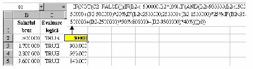 3. în celula corespunzatoare primului angajat se introduce formula de calcul printr-una din metodele cunoscute: