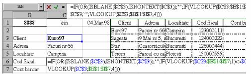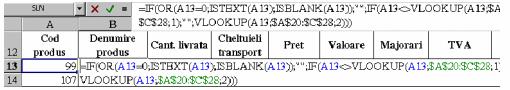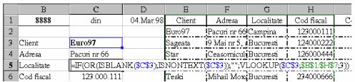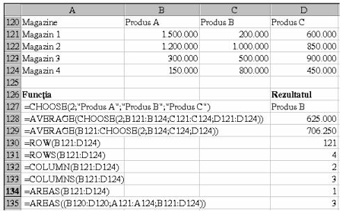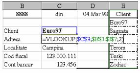 functii de cautare si consultare (Lookup & Reference): permit localizarea continutului unei celule;