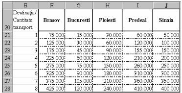 - se selecteaza plaja de celule de însumat, inclusiv zona unde se vor plasa rezultatele însumarii (o linie mai jos si/sau o coloana mai la dreapta), dupa care se activeaza butonul AutoSum prin dublu-click.