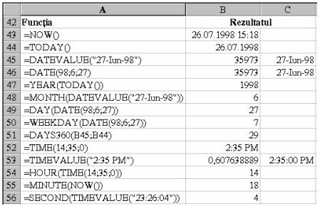 functii calendar sau data calendaristica (Date & Time): manipuleaza numere care reprezinta date calendaristice sau timp;