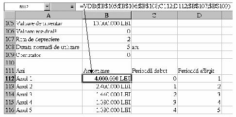 Prezentam în figura 1.92 un exemplu edificator de utilizare a functiilor SLN, SYD, DB si DDB.