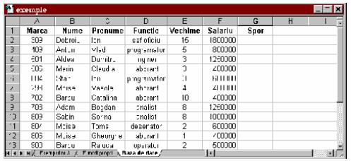 1. se deschide foaia de calcul care contine lista angajatilor cu toate informatiile aferente (marca, nume, prenume, vechime, salariu);