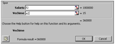 a) se tasteaza: =SPOR(F2; E2) unde F2, E2 sunt coordonatele corespunzatoare salariului si vechimii angajatului respectiv