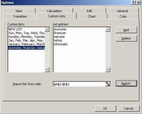 Nota: Ca sa elimini o lista personalizata trebuie sa o selectezi in caseta Custom Lists si sa executi click pe butonul Delete.