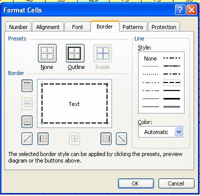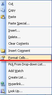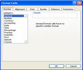 Din meniul Format din bara de meniu se alege optiunea Cells din lista derulanta pentru a se deschide caseta de dialog Format Cells la fel ca in imaginea de mai jos: