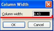 In fereastra de mai sus se alege optiunea Width pentru a se deschide caseta de dialog Column Width, la fel ca in imaginea de mai jos: