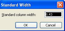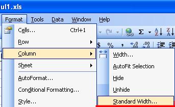 Dimensionare prin selectarea optiunii Standard Width din lista derulanta rezultata in urma accesarii comenzii Column din meniul Format