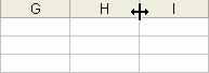 Dimensionare prin glisare cu marginea din dreapta a selectorului de coloana la dreapta sau la stanga, pentru a mari sau micsora latimea coloanei. In momentul pozitionarii cu indicatorul de la mouse pe marginea din dreapta a unui selector de coloana, apare un indicator de redimensionare care indica faptul ca exista posibilitatea de redimensionare a latimii coloanei.