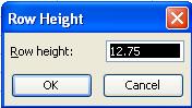 In fereastra de mai sus se alege optiunea Height pentru a se deschide caseta de dialog Row Height, la fel ca in imaginea de mai jos: