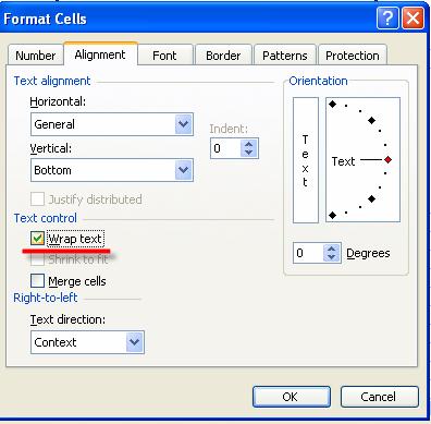 In fereastra Format Cells se poate bifa optiunea Wrap Text (Incadrare text) la fel ca imaginea urmatoare: