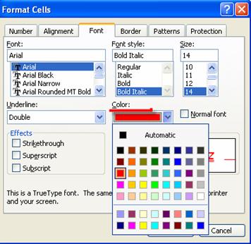 Din bara de meniu se aceseaza meniul Format optiunea Cells din lista derulanta pentru a se deschide caseta de dialog Format Cells la fel ca in imaginea urmatoare: