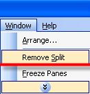 Figura 264 MSExcel - Optiune Remove Split din meniul Window