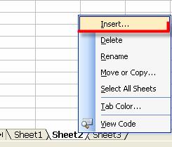 Se va da click dreapta pe o foaie de calcul, iar din lista derulanta se va alege optiunea Insert, ca in imaginea de mai jos: