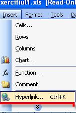 Se acceseaza meniul Insert, iar din lista derulanta se alege optiunea Hyperlink.