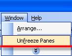 Figura MSExcel – Optiunea Unfreeze Panes din meniul Window