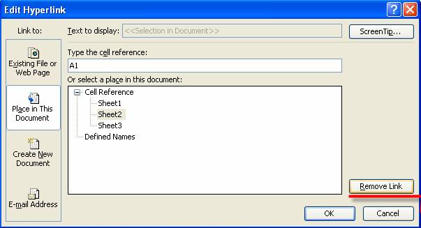 Din caseta de dialog Edit Hyperlink se va alege butonul Remove Hyperlink.