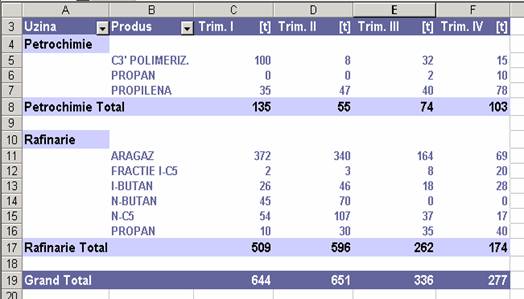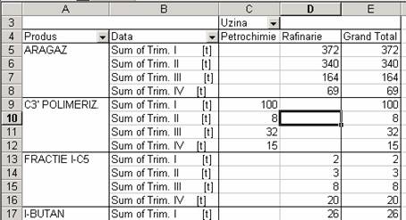 executarii unui dublu clic pe total Petrochimie trimestrul I
