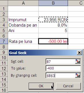 Comanda Goal Seek ne ajuta sa pornim de la rezultatul dorit al unei formule pe care il vem obtine prin schimbarea datelor initiale.