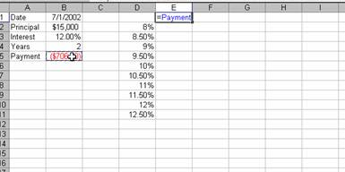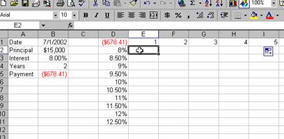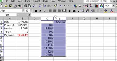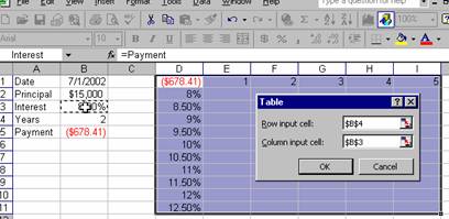 o Se subliniaza zona respectiva iar din meniul Data - Table. Alegem Column input si click pe ce vrem sa schimbam (dobanda). Astfel se testeaza toate dobanzile in formula si se trec automat valorile rezultate.
