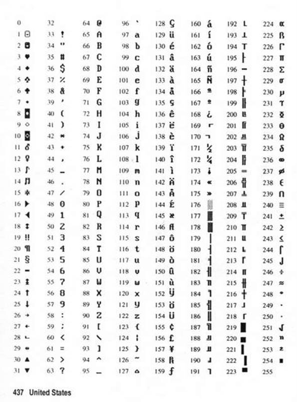 Prin intermediul bitilor se pot reprezenta nu numai numere ci si litere sau cuvinte. In calculator caracterele alfanumerice sunt codificate si deci recunoscute dupa un anumit sistem, codurile fiind tot numerice. Acest sistem permite reprezentarea cu usurinta si a valorilor logice TRUE =1 si FALSE = 0.