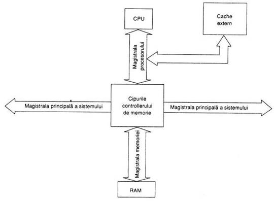 Este utilizata la transferul informatiilor intre CPU si memoria principala memoria RAM a sistemului. Aceasta magistrala este o parte din magistrala procesorului sau, de cele mai multe ori, este implementata separat cu un set special de cipuri, care este responsabil cu transferul informatiilor intre magistrala procesorului si memorie. Sistemele cu frecventa placii de baza de 16 MHz sau mai mare lucreaza Ia viteze care depasesc posibilitatile cipurilor DRAM standard. In astfel de sisteme este utilizat un set de cipuri (controllerul memoriei) care realizeaza interfata intre magistrala rapida a procesorulul si memoria principala, mai lenta.