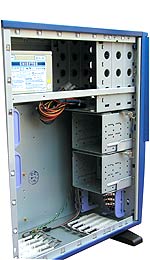 Carcasa pe care am ales-o pentru exemplificare are panourile laterale detasabile si sursa plasata în partea superioara, orizontal. Este o solutie simpla, necostisitoare si care permite o buna ventilatie.