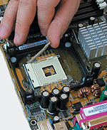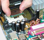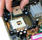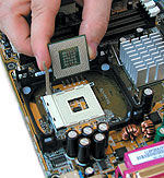 Pozitionati cipul. Pentru a executa aceasta operatiune trebuie identificat pinul 1, atât pe cip cât si pe socket. Pe procesor, coltul cu pinul 1 este marcat distinctiv si nu poate fi confundat. Pe socket, pinul 1 este marcat fie prin cifra 1 scrisa în dreptul acestuia, fie prin lipsa orificiului din coltul destinat pinului 1.