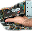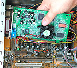 pozitionând partea care intra în slotul PCI exact deasupra acestuia.