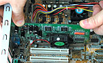 introduce un colt, apasând apoi toata placa în slot. Dupa