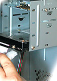 La alegerea locului unitatii sau unitatilor optice trebuie tinut cont de pozitia placii de baza si de dispunerea conectorilor sai. Este momentul sa luati placa de baza si, introducând-o în interior, sa observati locul în care sunt plasate elementele de prindere de carcasa. Se scoate placa de baza, se fixeaza soclurile pentru suruburi si/sau elementele de prindere din plastic (distantatoare), apoi se introduce din nou placa de baza în interior verificând daca elementele de prindere sunt pozitionate corect. Daca aceste elemente sunt pozitionate corect, se poate încerca si introducerea unitatii optice în interior, pentru a vedea daca nu se loveste de componentele placii de baza. Alegeti locasul potrivit, tinând cont de componentele placii de baza, de spatiul ocupat de memorii, de spatiul existent în jurul unitatii optice (este preferata o pozitie care sa permita o circulatie cât mai buna a aerului, în timpul citirii, unitatile optice încalzindu-se considerabil). În final, se scoate unitatea optica.