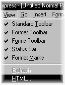 Un alt lucru important si foarte util pentru dumneavoastra, este faptul ca aveti posibilitatea de a lucra direct cu codul html, unde puteti face modificarile necesare si puteti adauga diferite script-uri. De asemenea, aceasta facilitate este foarte utila la compilarea sitului dumneavoastra. Pentru a lucra direct cu codul html, selectati optiunea "HTML..." din meniul "View". La selectarea acestei comenzi, ca efect vizual, va apare o fereastra in care se poate edita direct codul. Un ajutor important este dat de faptul ca acest cod este colorat standart, pentru a deosebi cel mai bine elementele.