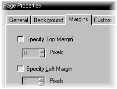 In sectiunea "Margins" se pot configura marginile paginii html. Problema cu care se confrunta foarte multi este aceea ca exista browsere care nu recunosc aceste margini (ex: Netscape), fapt care ar determina un alt aspect al paginii cu acest navigator. Daca doriti sa folositi aceasta optiune, va trebui sa recomandati ca browser, Internet Explorer. Calea cea mai buna, este sa evitati sa setati marginile paginii, astfel ele vor fi vazute la fel in toate navigatoarele.