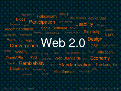 Web 2.0 este noua generatie[1] a web-ului care pare a fi in ultimul timp subiectul preferat al analistilor si cercetatorilor din domeniu, fiind considerat un concept la moda. Termenul acesta a fost folosit pentru prima data in 2004 de catre Tim O’Reilly in cadrul unei conferinte, care este considerat de atunci parintele sau. Desi sintagma a fost folosita doar pentru a semnala ca ceva diferit se intampla, fara a fi furnizata si o definitie clara a acestuia, totusi conceptul a fost imbra& 818c27i #355;isat de catre marea comunitate a utilizatorilor Internet.