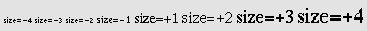 Tag-urile <FONT> ... < / FONT>, īmpreuna cu atributul SIZE permit modificarea dimensiunii fontului de baza, a carui valoare implicita este 3 (specificata printr-o alta extensie, si anume <BASEFONT>, font de baza care are de asemenea atributul SIZE). Valorile atributului SIZE sīnt īntre 1 si 7. Dimensiunea fontului poate fi specificata si relativ la fontul de baza, situatie īn care valorile lui SIZE sīnt īntre -3 si +4.