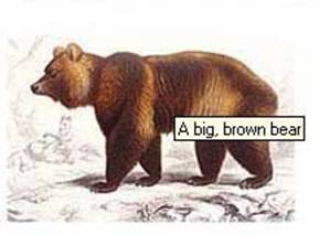 <P> <IMG SRC="bear.jpg" WIDTH="201" HEIGHT="132" BORDER=0 ALT="A big, brown bear">