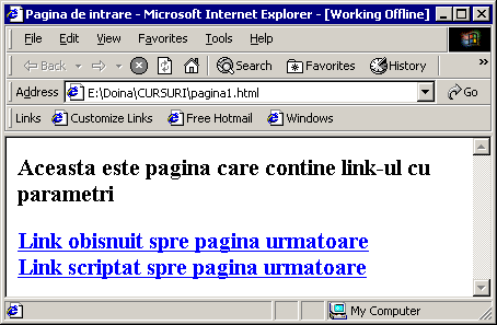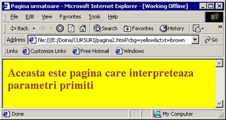 link catre pagina2.html cu parametri cbg (culoarea fondului) si ctxt