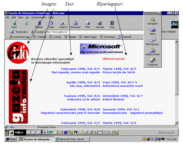 Exemplu: Pagina Web a revistei Gazeta de Informatica se acceseaza prin adresa URL https://www.ginfo.ro. Articolele aparute in revista pot fi consultate prin Internet. |