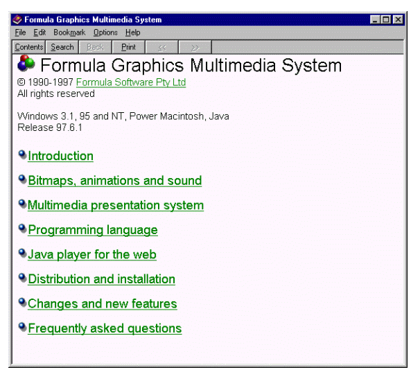 Programul Formula Graphics - Multimedia System Definitie. Programul Formula Graphics este un sistem multimedia pentru dezvoltarea aplicatiilor interactive multimedia prin utilizarea bazelor de date si a informatiilor din sistemul Internet oferind utilizatorilor-clienti prelucrari in hypertext si grafica. Programul prelucreaza imagini, animatie si sunete, si ofera un limbaj de programare pentru elaborarea de aplicatii multimedia. Ofera instrumente Java pentru elaborarea de pagini Web. |