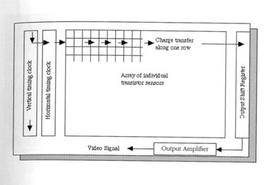 a) Camere standard, care utilizeaza cipuri care au o multime de senzori pentru pixeli (elemente de imagine) -cca. 500.000 senzori /cmp. Senzorii functioneaza ca numaratori de fotoni, astfel ca semnalul sumat si amplificat de la fiecare linie a acestor senzori produce un voltaj analog. Exista diferite circuite care citesc informatia data de senzori CCD (charge couple device) circuite cu transfer de sarcina, CID (charge injection device) sau altele. Efectul dat de diferentele acestea este ca sunt camere care permit acumularea în cip a unor imagini intunecoase pe perioade mai lungi de timp sau din contra capturarea rapida a imaginii intr-o scurta perioada de timp. Camerele utilizate pentru a capta imagini de intensitate foarte joasa sunt utilizate în astronomie, microscopia fluorescenta, etc.
