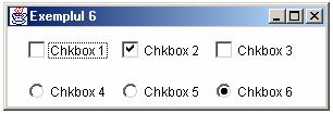 Exemplul 6. Vom construi un cadru format din doua panouri: primul cuprinde trei casute de optiuni independente, iar al doilea cuprinde un grup de alte trei casute de optiuni: