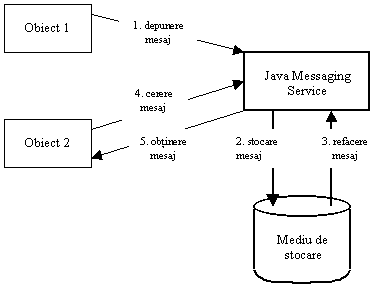 Java Messaging Service (JMS). JMS permite comunicarea între obiecte distribuite în mod asincron.