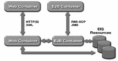 Java Remote Method Invocation (RMI) si RMI- IIOP. Tehnologia RMI permite comunicarea între procese si furnizeaza alte servicii legate de comunicare. RMI-IIOP este o extensie portabila a RMI, care foloseste protocolul de comunicare Internet Inter Object Protocol (IIOP). IIOP poate fi utilizat pentru a migra spre CORBA (Common Object Request Broker). Folosind CORBA, se poate realiza comunicarea între aplicatii de pe platforme diferite, scrise în limbaje de programare diferite. Aceasta este o modalitate de legare a componentelor J2EE cu alte componente create folosind alte tehnologii.