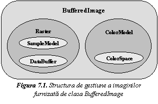 În Figura 7.1 este prezentat modelul de gestiune generala a imaginilor din Java 2D, care este controlat de catre clasa BufferedImage.